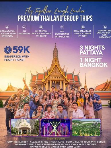 Uncover the Land of Smiles with our affordable Thailand tour packages. Explore the buzzing street markets and magnificent temples of Bangkok and the vibrant nightlife of Pattaya. Relax on the idyllic white-sand beaches and turquoise waters of Phuket and Krabi. Our packages offer a seamless blend of culture, relaxation, and adventure, including city tours and island hopping. Book now to enjoy the unforgettable flavors and warm hospitality of Thailand!