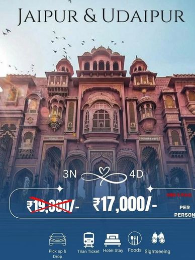 Journey to the heart of Rajasthan with our exclusive Jaipur and Udaipur tour package. Explore the Pink City of Jaipur, home to the majestic Amer Fort and the iconic Hawa Mahal. Next, discover the romance of Udaipur, often called the City of Lakes, renowned for its enchanting Lake Pichola and the grand City Palace. This perfectly crafted itinerary blends Jaipur's vibrant royal history with Udaipur's serene natural beauty. Book now for an unforgettable experience steeped in Rajput culture, magnificent architecture, and stunning lakeside views.