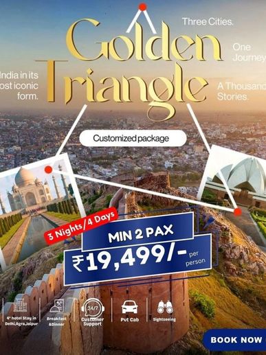 Explore the heart of India with our classic Golden Triangle tour package. This iconic circuit links the historical splendor of Delhi, the Mughal wonders of Agra, and the royal heritage of Jaipur. Witness the eternal beauty of the Taj Mahal at sunrise, delve into the vibrant culture of the Pink City, and tour the majestic forts of Delhi. Our expertly crafted package ensures seamless travel between these three magnificent cities. Book your journey now to experience India's rich history and architectural brilliance.